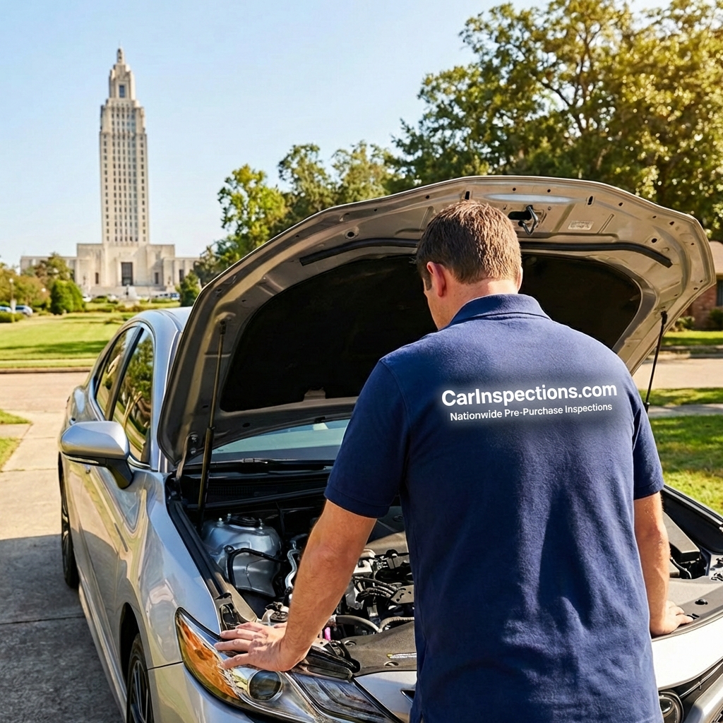 We come to wherever the car is in the Baton Rouge area. Our ASE-certified mechanics perform a comprehensive 200+ point inspection and deliver a detailed report with photos before you buy.