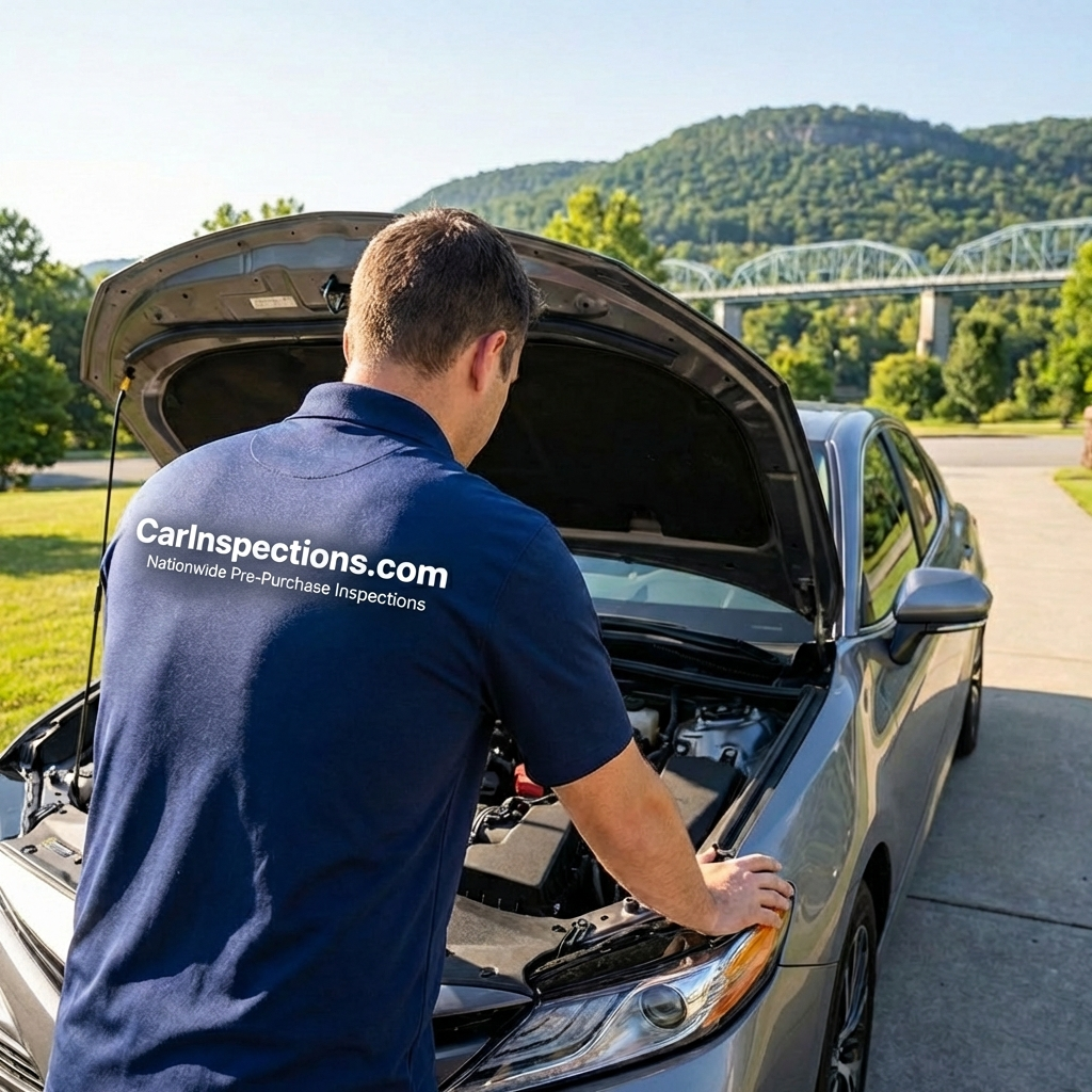 We come to wherever the car is in the Chattanooga area. Our ASE-certified mechanics perform a comprehensive 200+ point inspection and deliver a detailed report with photos before you buy.