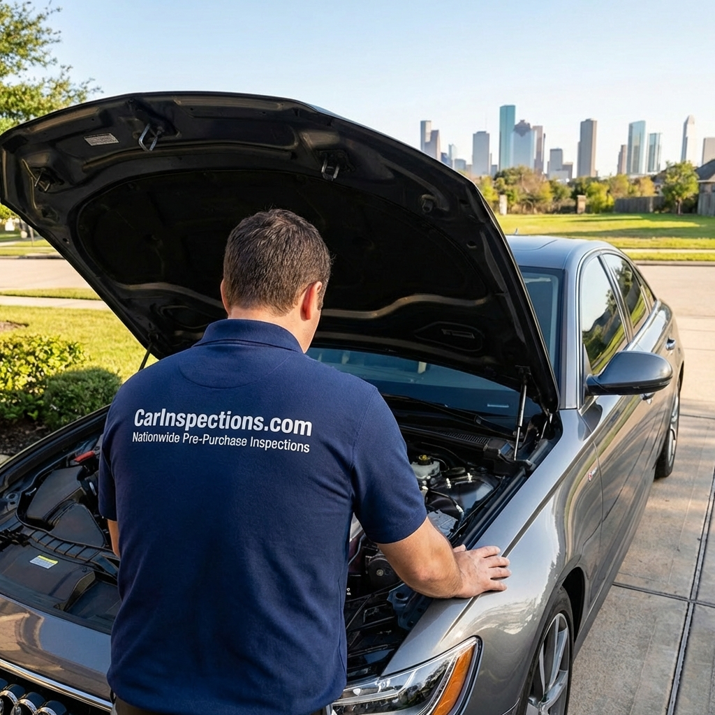 We come to wherever the car is in the Houston area. Our ASE-certified mechanics perform a comprehensive 200+ point inspection and deliver a detailed report with photos before you buy.