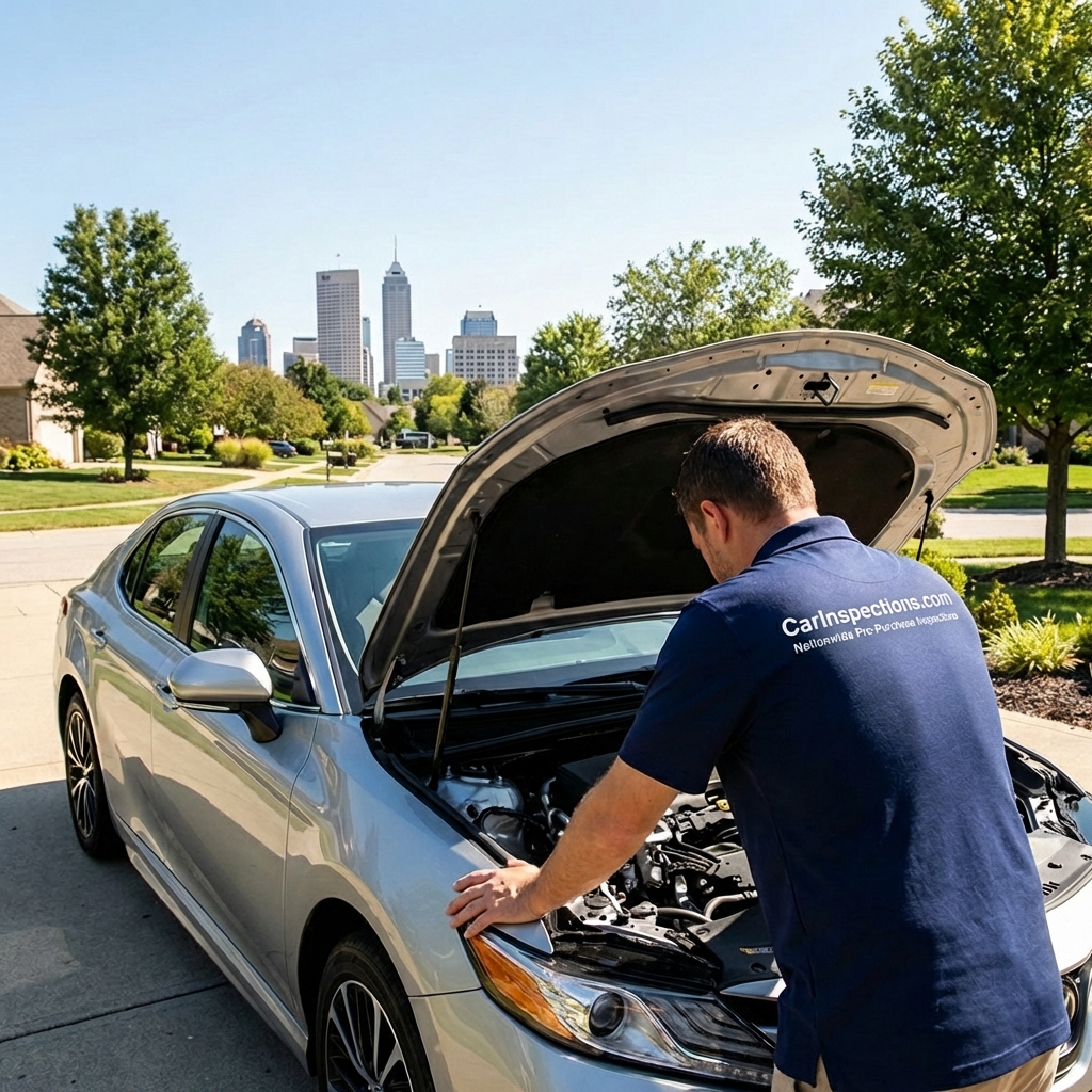 We come to wherever the car is in the Indianapolis area. Our ASE-certified mechanics perform a comprehensive 200+ point inspection and deliver a detailed report with photos before you buy.