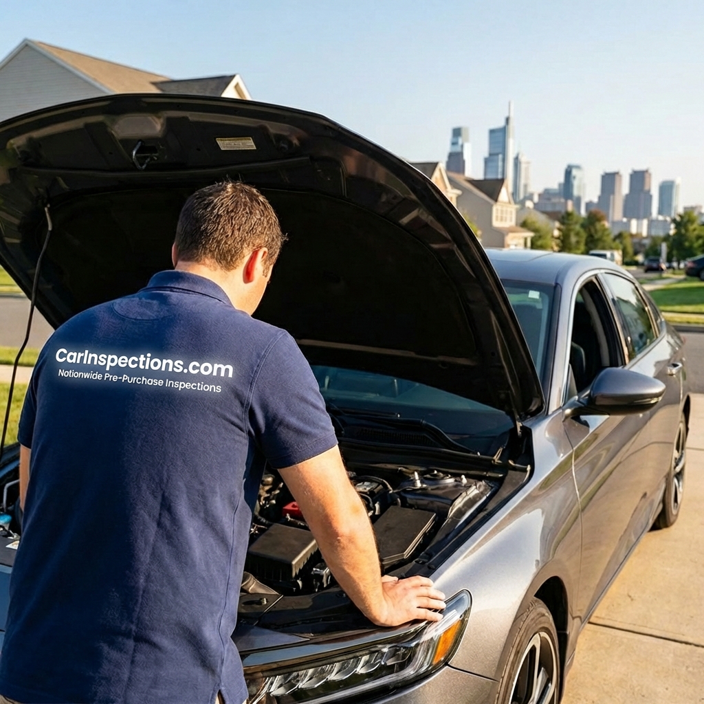 We come to wherever the car is in the Philadelphia area. Our ASE-certified mechanics perform a comprehensive 200+ point inspection and deliver a detailed report with photos before you buy.