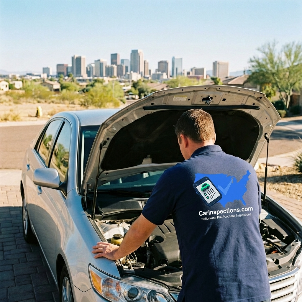 We come to wherever the car is in the Phoenix area. Our ASE-certified mechanics perform a comprehensive 200+ point inspection and deliver a detailed report with photos before you buy.