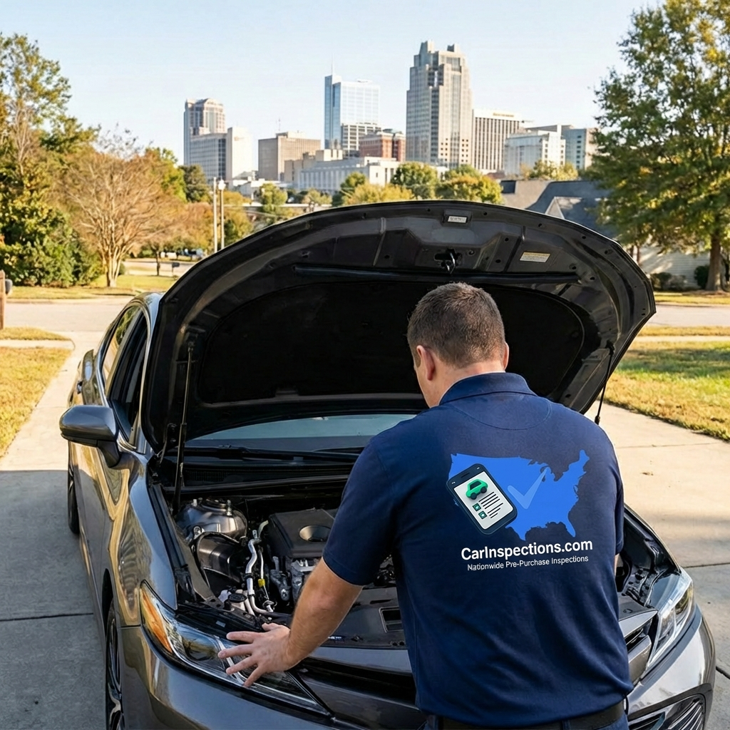 We come to wherever the car is in the Raleigh area. Our ASE-certified mechanics perform a comprehensive 200+ point inspection and deliver a detailed report with photos before you buy.