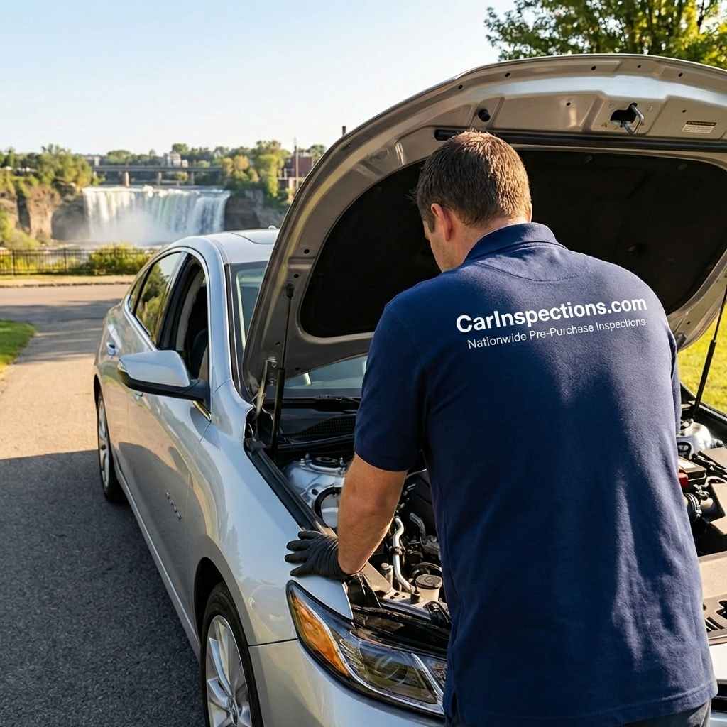 We come to wherever the car is in the Rochester area. Our ASE-certified mechanics perform a comprehensive 200+ point inspection and deliver a detailed report with photos before you buy.
