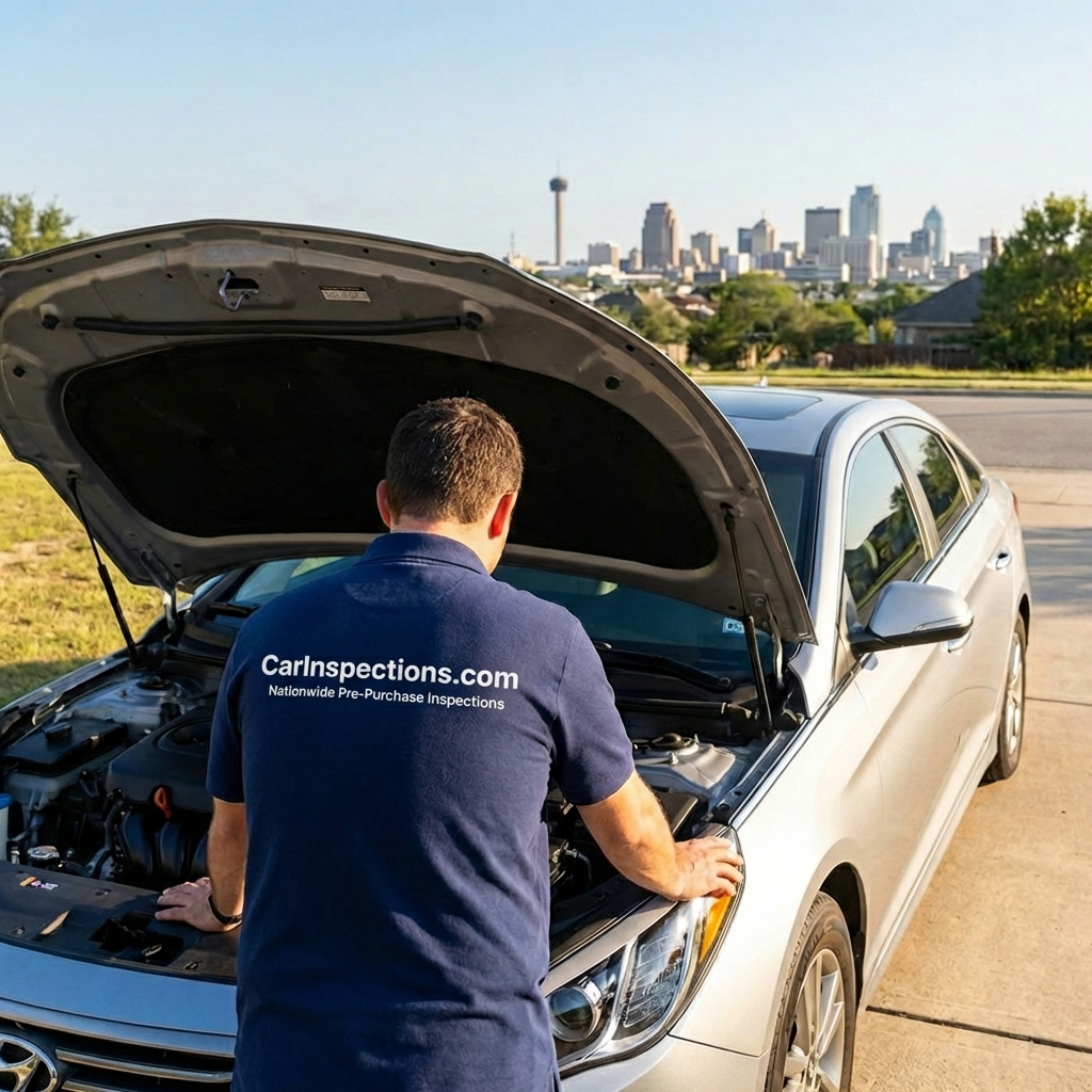 We come to wherever the car is in the San Antonio area. Our ASE-certified mechanics perform a comprehensive 200+ point inspection and deliver a detailed report with photos before you buy.