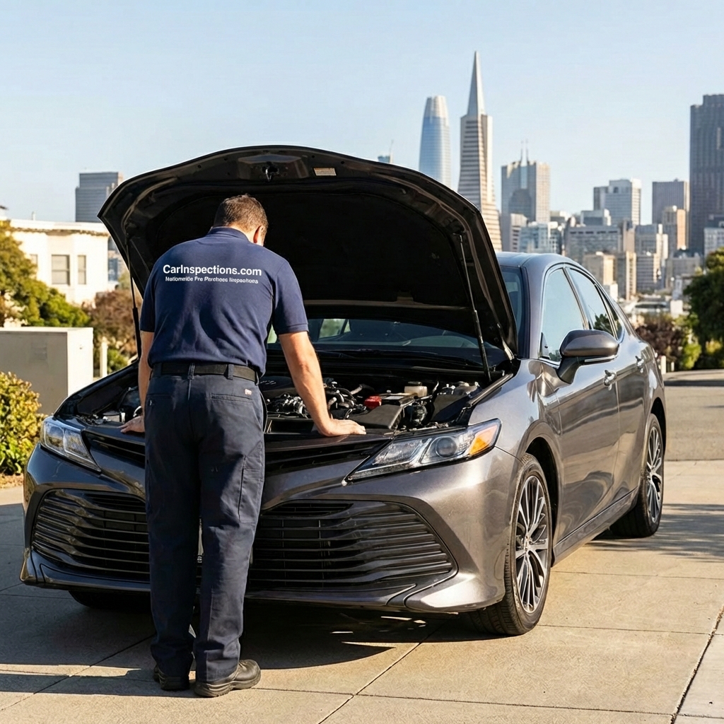 We come to wherever the car is in the San Francisco area. Our ASE-certified mechanics perform a comprehensive 200+ point inspection and deliver a detailed report with photos before you buy.
